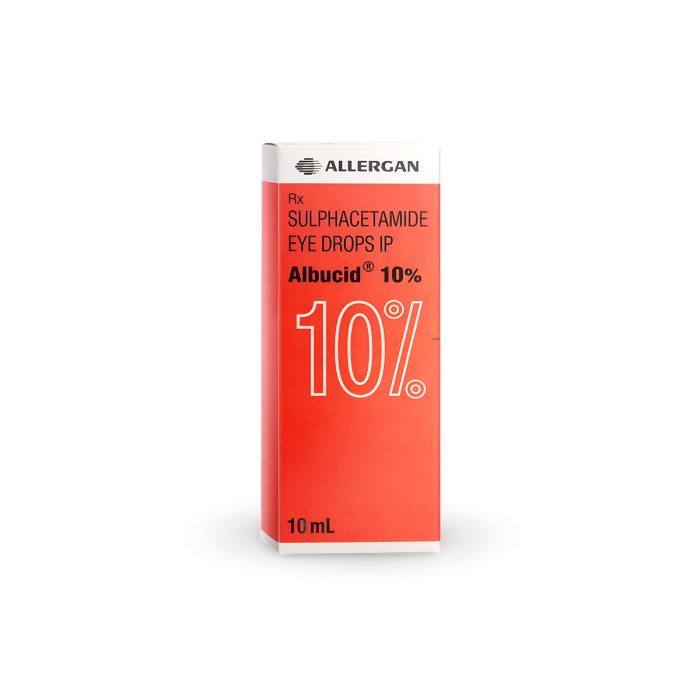 Albucid 10 Eye Drops are used to treat bacterial eye infections, such as Conjunctivitis, and contain FDA-approved Sulfacetamide Sodium (10% w/v) as the active ingredient. Sulfacetamide belongs to the Sulfonamide (Sulfa) Antibiotic class and works by stopping bacterial growth. Albucid is manufactured by Allergan India Pvt. Ltd under strict GMP standards.