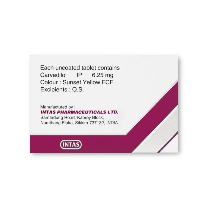 Carca 6.25 mg is used alone or in combination with other medications to treat heart failure, heart-related chest pain (Angina), and Hypertension (High Blood Pressure). It contains Carvedilol, which belongs to a class of medications called beta-blockers.