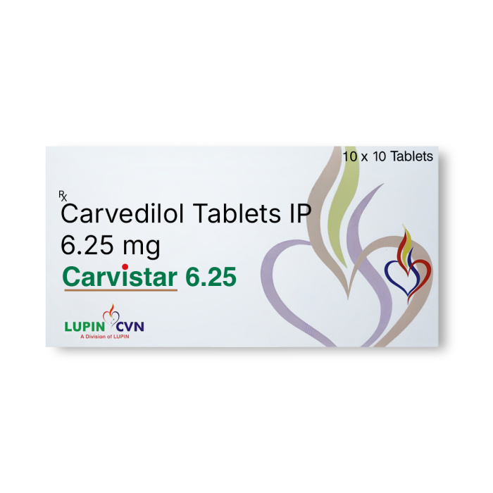 Carvistar 6.25 mg is a prescription medicine used for Hypertension treatment (High Blood Pressure), heart failure, and certain heart conditions. It contains Carvedilol, a non-selective beta-blocker and alpha-blocker, which relaxes blood vessels and reduces the heart's workload.