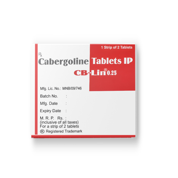 CB-Lin 0.25 tablet is a dopamine agonist manufactured by Serum Institute Of India Ltd. It contains Cabergoline (0.25mg) and is primarily prescribed for high prolactin levels (Hyperprolactinemia), which can lead to irregular menstrual cycles, infertility, and abnormal lactation. Lowering prolactin secretion in the brain helps restore hormonal balance and supports reproductive health.