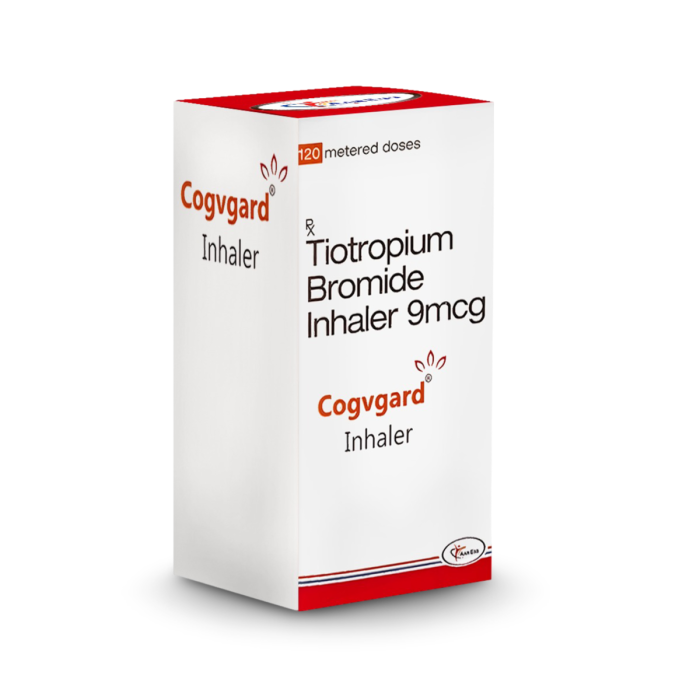 The Cogvgard Inhaler, containing 9 mcg of Tiotropium, helps manage Asthma and COPD by relaxing airway muscles and improving breathing.