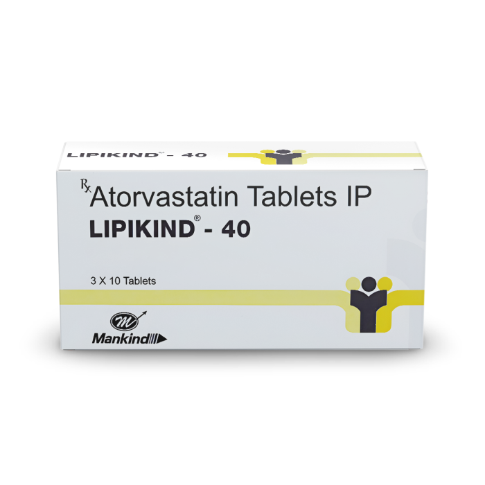 Lipikind 40 mg tablet is a Statin therapy. It contains Atorvastatin, an FDA-approved active ingredient, and is manufactured by Mankind Pharma Ltd. The medicine primarily lowers cholesterol levels and reduces the risk of heart problems.