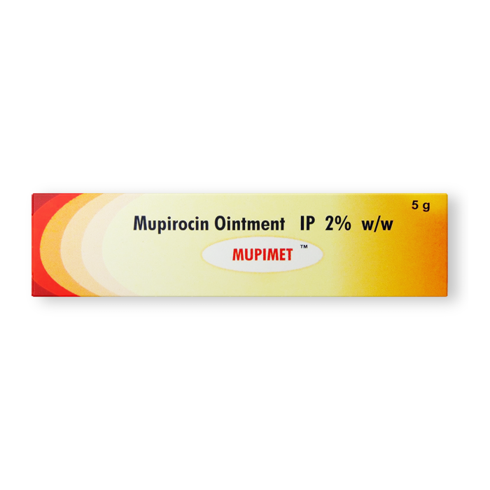 Mupimet Ointment is a topical antibiotic containing Mupirocin. It is used primarily to treat bacterial skin infections, including impetigo and infected wounds.