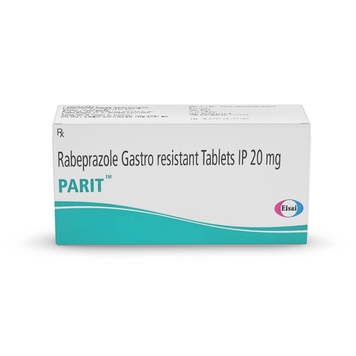Parit Tablet, containing Rabeprazole, is made by EISAI Pharmaceuticals and reduces stomach acid to treat acid reflux and peptic ulcers.