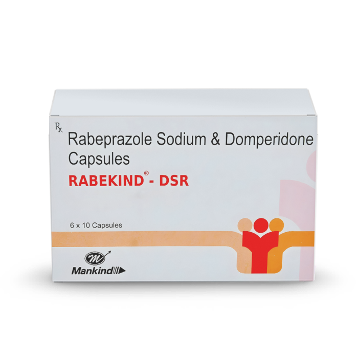 Domperidone in Rabekind-DSR might cause a prolonged heart rhythm (QT interval), so it should be avoided in those with heart issues. Always check with your doctor before using it with other medications. Well-known Mankind Pharma Ltd. manufactures this capsule in a GMP-compliant facility.