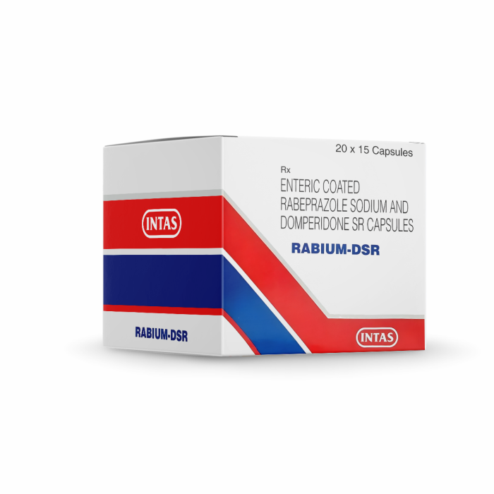 Rabium-DSR is a prescription acid reflux treatment that includes Rabeprazole (a proton pump inhibitor) and Domperidone (a Dopamine antagonist), primarily used to manage Gastroesophageal Reflux Disease (GERD) and stomach ulcers.