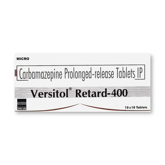 Versitol Retard 400 PR is a prolonged-release anticonvulsant medication used to manage Epilepsy and certain types of seizures (fits). It is also prescribed for certain nerve pain types, such as trigeminal neuralgia (severe nerve-related facial pain) and diabetic neuropathy.