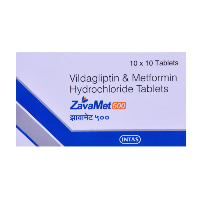 Zavamet 500 mg Tablet is used to treat Type 2 Diabetes Mellitus by managing blood sugar levels. It contains Metformin Hydrochloride 500 mg and Vildagliptin 50 mg. Metformin is a Biguanide, and Vidagliptin is a Dipeptidyl Peptidase-4 (DPP-4) inhibitor. It is manufactured by Intas Pharmaceuticals Ltd. Both Metformin and Vildagliptin are FDA-approved, and the medicine is manufactured in accordance with GMP standards.