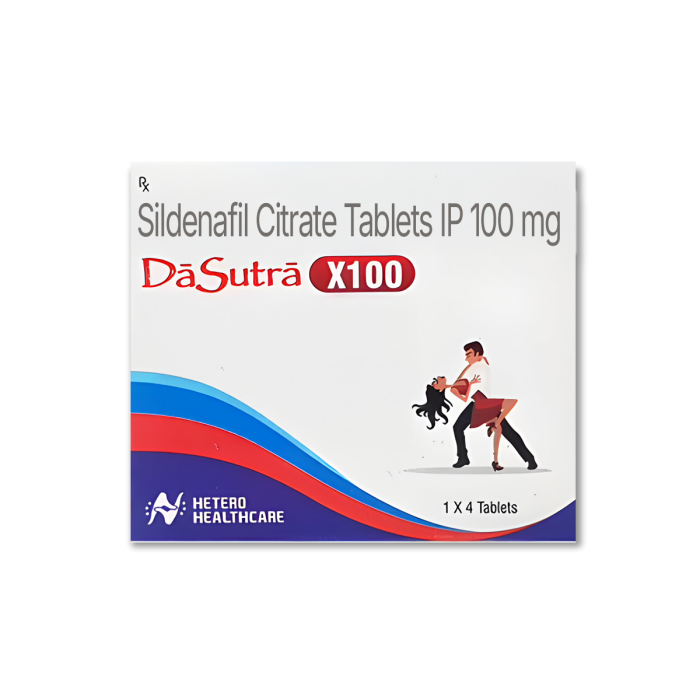 Da Sutra X100 is a prescription Erectile Dysfunction treatment available as Sildenafil 100 mg tablets. Hetero Healthcare Limited manufactures it under strict quality standards in GMP-compliant and WHO-approved facilities.