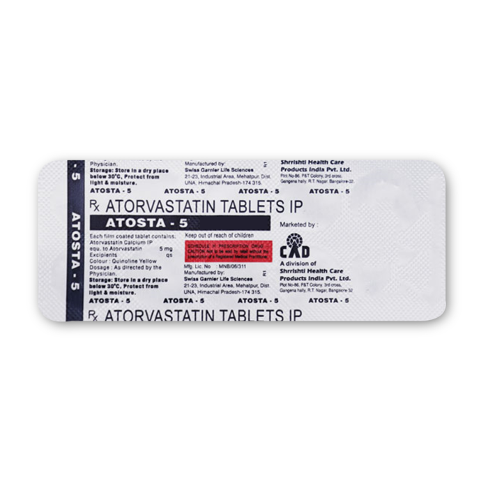 Atosta 5 mg tablet is a lipid management medication that effectively manages cholesterol and triglyceride levels. It effectively lowers cholesterol levels and reduces the risk of heart conditions such as heart attacks and strokes.