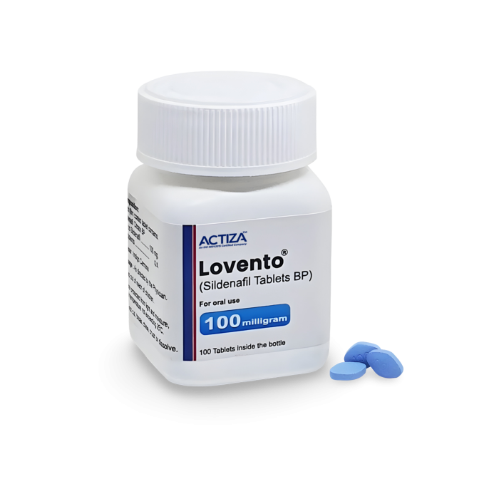 Lovento 100 mg is an Erectile Dysfunction medicine designed to help men experiencing difficulty in achieving or maintaining an erection. Its active ingredient, Sildenafil Citrate, is a Phosphodiesterase inhibitor that improves blood flow to the penis when you are sexually aroused.