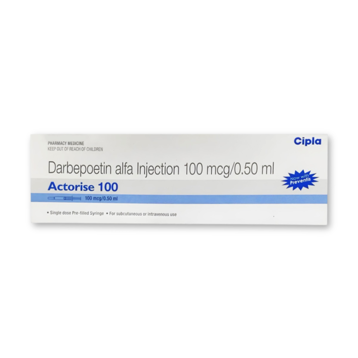 Actorise 100 works by stimulating the bone marrow to produce more red blood cells, helping to manage anemia effectively. It contains Darbepoetin alfa, an erythropoiesis-stimulating agent that boosts hemoglobin levels and improves oxygen transport in the body.