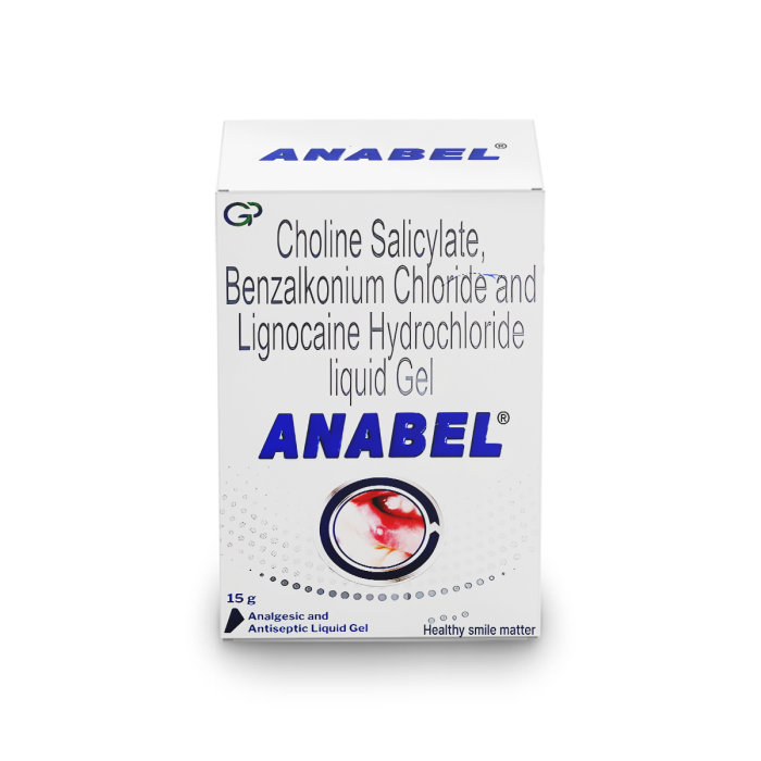 Anabel Liquid Gel is primarily used to relieve discomfort associated with mouth ulcers and other minor oral irritations. This gel is a combination of two active ingredients: Choline Salicylate and Lidocaine as its active ingredients. Choline Salicylate belongs to the nonsteroidal anti-inflammatory drug (NSAID) class, while Lidocaine is a local anesthetic.