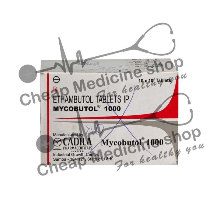 Mycobutol 1000 mg contains an active ingredient, Ethambutol, an antitubercular drug which is used in the treatment of Tuberculosis. It is available at all the leading pharmacy, drugstores, and medical supply stores and can be given by doctor’s prescription only.