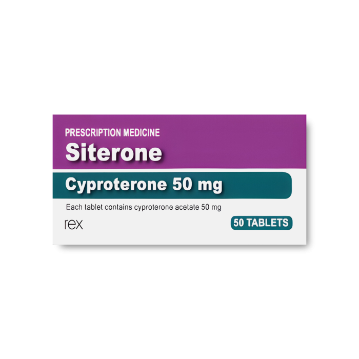 Siterone 50mg Tablets are Cyproterone Acetate tablets that act as a potent antiandrogen medicine to regulate the effects of male sex hormones in both men and women. Manufactured by REX Medical Ltd. in a GMP-certified facility, this hormonal therapy provides targeted control over androgen activity with proven safety and consistency.