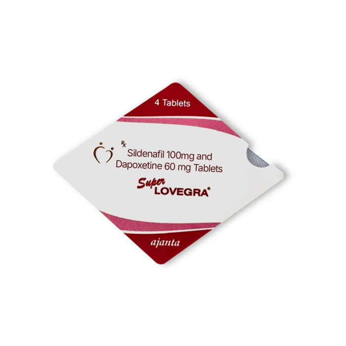 The combination medicine Super Lovegra is used to treat female Sexual Dysfunction and low libido. Its main components are the Selective Serotonin Reuptake Inhibitor (SSRI) Dapoxetine 60 mg and the Phosphodiesterase Type 5 (PDE5) inhibitor Sildenafil 100 mg. The top pharmaceutical company, Ajanta Pharma, produces the tablet.