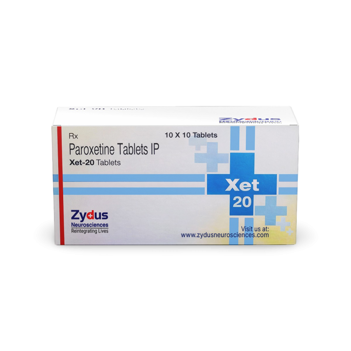 Xet 20 is a prescription antidepressant used to treat Major Depressive Disorder (MDD) and various anxiety disorders. Each tablet contains 20 mg of Paroxetine, an FDA-approved selective serotonin reuptake inhibitor (SSRI). It increases serotonin levels in the brain, which helps improve mood, reduce Anxiety, and support emotional stability.